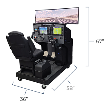 The visual simulation is displayed on a high-resolution widescreen LED monitor and supports every VFR or IFR training scenario you could dream up. It’s a robust simulation of the entire planet including more than 24,900 airports, weather, continuous time of day, seasons, and a variety of lighting effects.